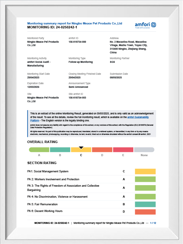 Gıda güvenliği can damarıdır Ningbo Meace Evcil Hayvan Ürünleri Co, Ltd