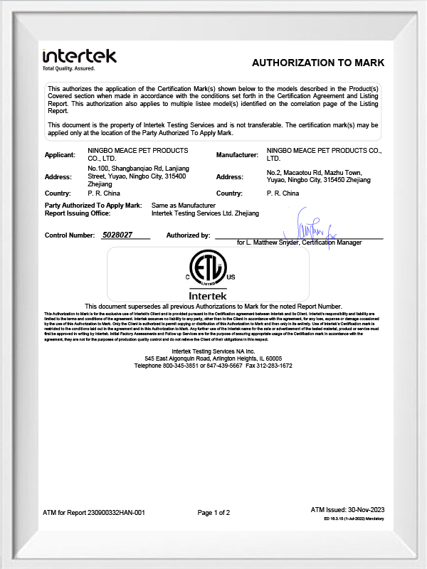Kendine ait enjeksiyon atölyesi sayesinde Ningbo Meace Evcil Hayvan Ürünleri Co, Ltd , parçalar sıkı bir şekilde takılmış olmasına rağmen çıkarılması kolaydır.