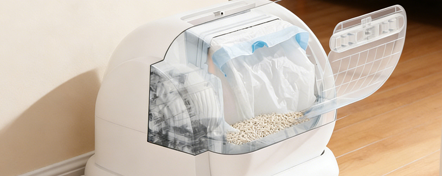 Bu akıllı kendi kendini temizleyen kedi kumu kutusu, günlük çöp yönetimini daha kolay ve daha güvenilir hale getirmek için pratiklik ve rahatlığa odaklanarak evcil hayvan sahibi haneler için tasarlanmıştır. Ürün, ana yapı olarak stabilite, dayanıklılık ve kolay temizlik sunan PP ve ABS kompozit malzemeleri kullanır. Uzun süreli kullanımda bile iyi görünümü ve işlevsel performansı koruyabilir. Çöp kutusunun iç yapısı, kedilere girerken ve kullanırken doğal ve rahat bir deneyim sağlayacak şekilde optimize edilmiştir ve yeni bir cihazla karşılaştığında hassas kedilerin direncini azaltır.