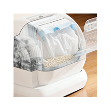 Geniş iç kısım kedilerin rahatça dönmesine ve çömelmesine olanak tanır. Üstü açık tasarım havanın tıkanmasını önlerken, sıçramayı önleyen yapı da çöplerin dışarı sızmasını önler.
